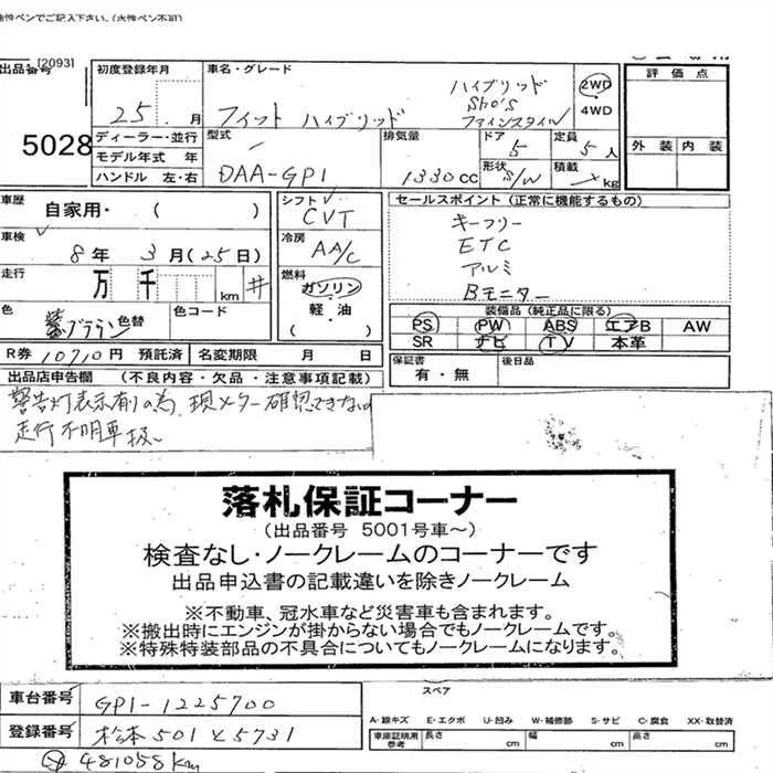 13G F PACKAGE | DBA-GK3 | L13B | FF | 5MT | 1317cc | 100ps(73kW)/6000rpm | AИ-92 | 1 360 000 | |