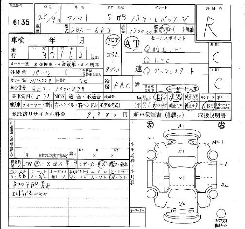 13G F PACKAGE | DBA-GK3 | L13B | FF | 5MT | 1317cc | 100ps(73kW)/6000rpm | AИ-92 | 1 360 000 | |