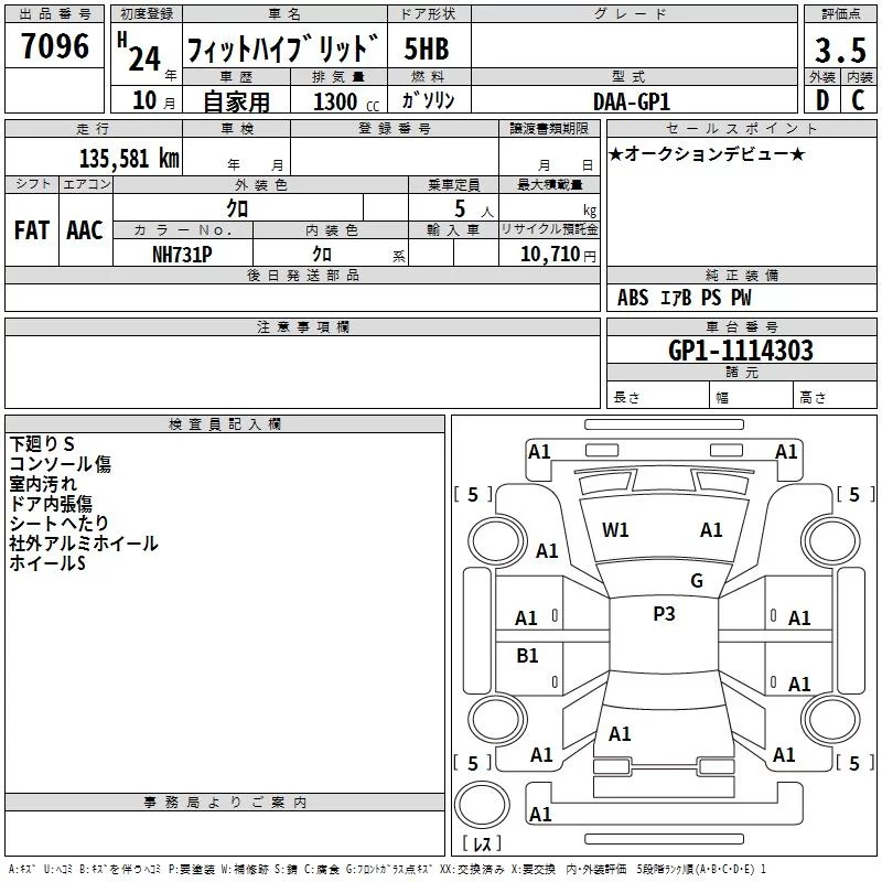 13G | DBA-GE6 | L13A | FF | 5MT | 1339cc | 100ps(73kW)/6000rpm | AИ-92 | 1 230 000 |