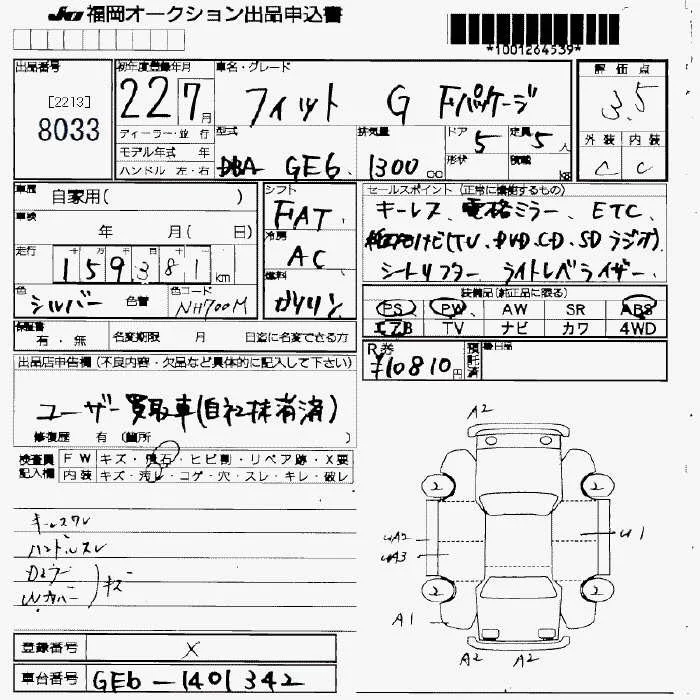 G | DBA-GE6 | L13A | FF | 5MT | 1339cc | 100ps(73kW)/6000rpm | AИ-92 | 1 230 000 | |