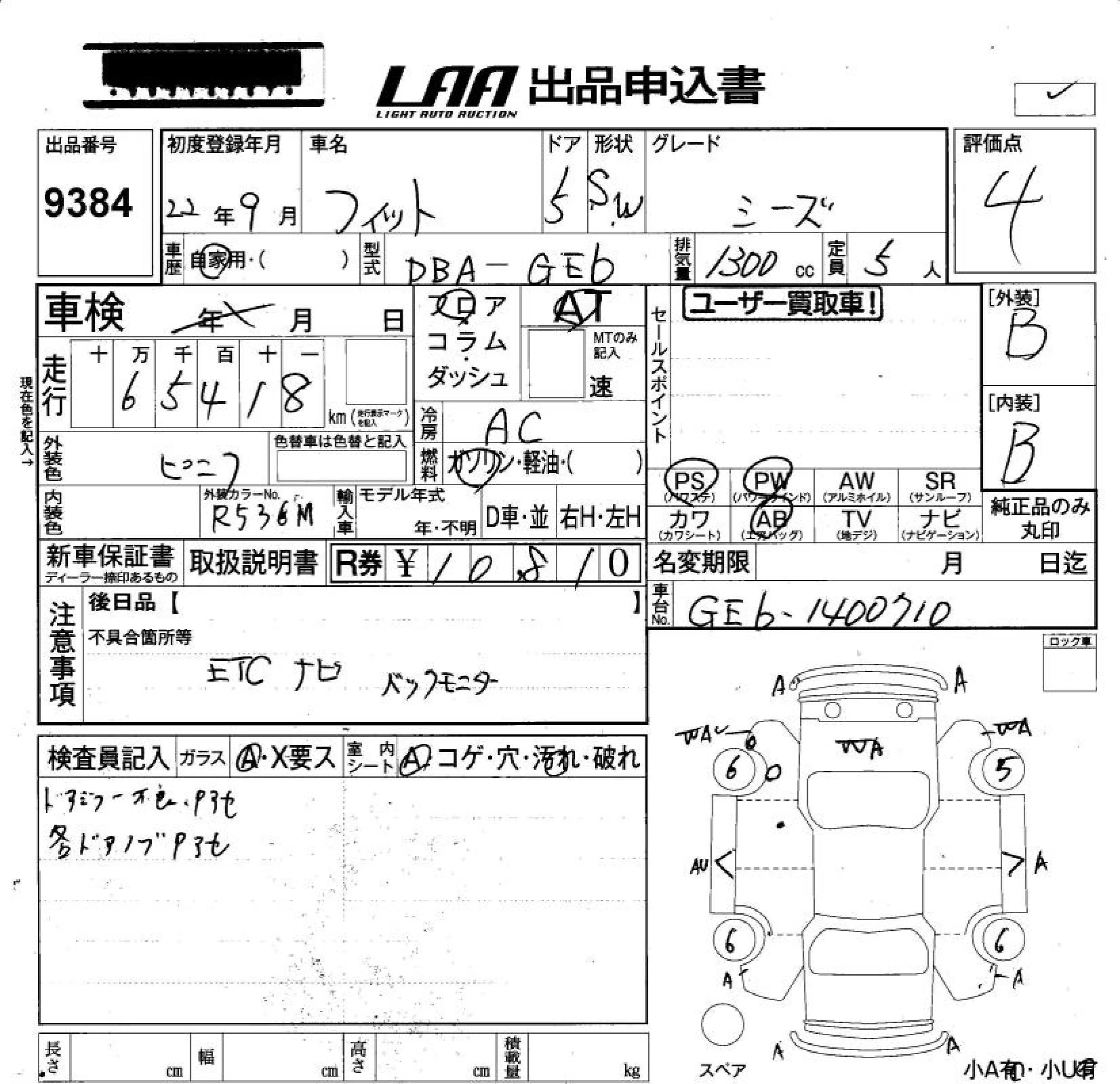 G | DBA-GE6 | L13A | FF | CVT | 1339cc | 99ps(73kW)/6000rpm | AИ-92 | 1 230 000 |