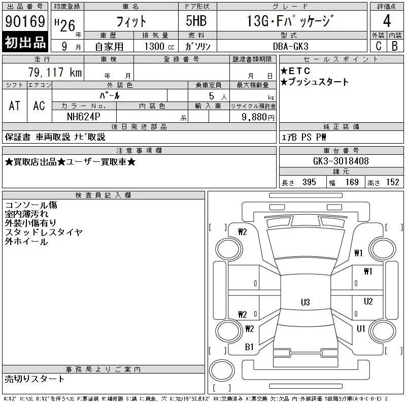 13G S PACKAGE | DBA-GK3 | L13B | FF | CVT | 1317cc | 100ps(73kW)/6000rpm | AИ-92 | 1 604 572 | |