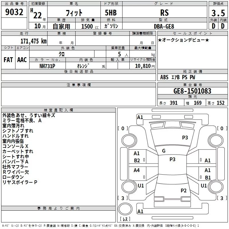 SPORTY EDITION | DBA-GE6 | L13A | FF | CVT | 1339cc | 100ps(73kW)/6000rpm | AИ-92 | 1 390 000 | |