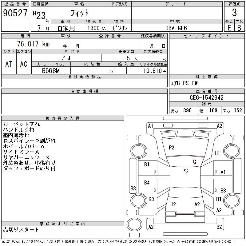 G | DBA-GE6 | L13A | FF | 5MT | 1339cc | 100ps(73kW)/6000rpm | AИ-92 | 1 230 000 |