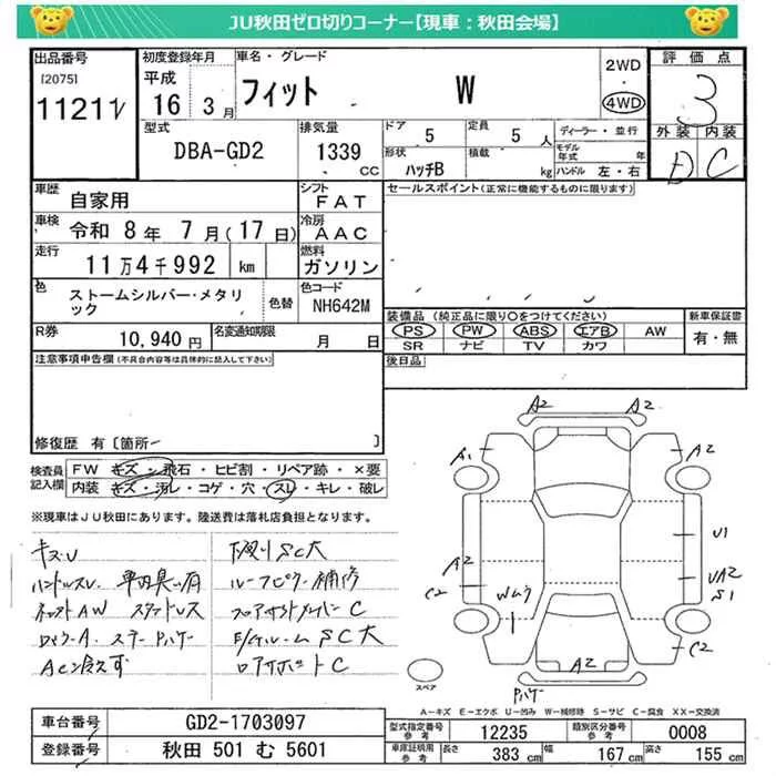 W | DBA-GD1 | L13A | FF | CVT | 1339cc | 86ps(63kW)/5700rpm | AИ-92 | 1 349 250 | |