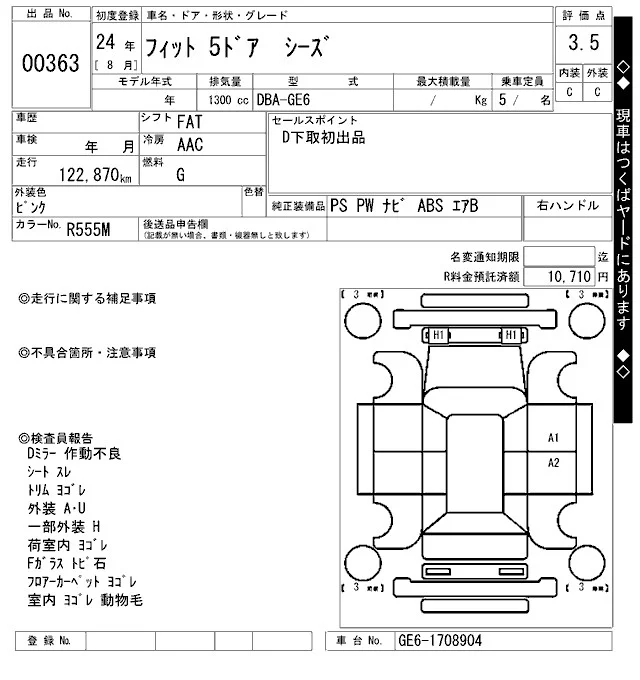 13G | DBA-GE6 | L13A | FF | 5MT | 1339cc | 100ps(73kW)/6000rpm | AИ-92 | 1 230 000 |