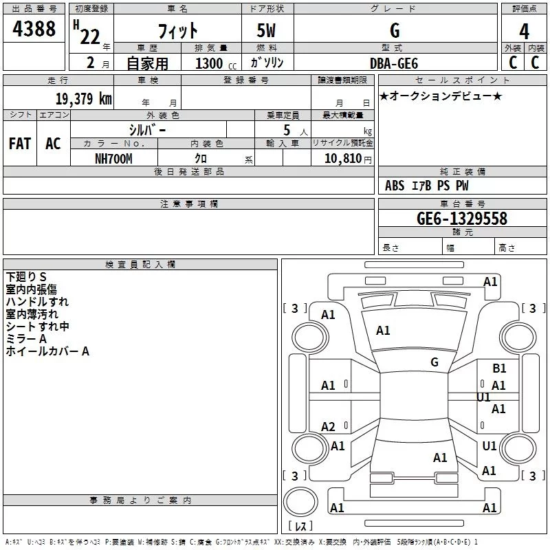 G | DBA-GE6 | L13A | FF | 5MT | 1339cc | 100ps(73kW)/6000rpm | AИ-92 | 1 230 000 | |