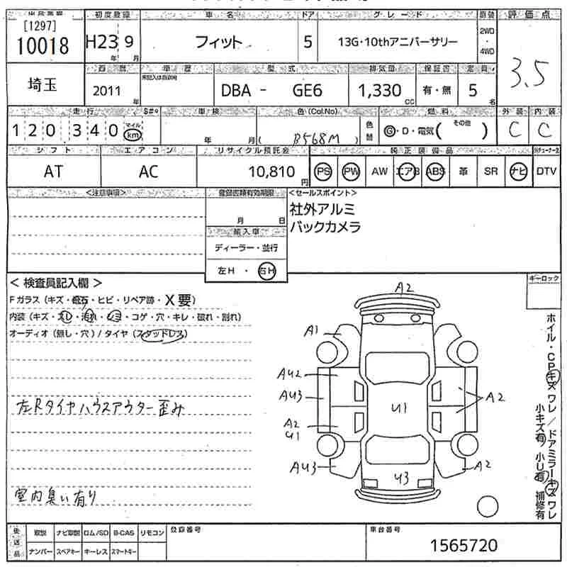 G 10TH ANNIVERSARY II | DBA-GE6 | L13A | FF | CVT | 1339cc | 99ps(73kW)/6000rpm | AИ-92 | 1 370 000 |