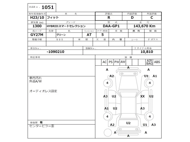 G 10TH ANNIVERSARY II | DBA-GE6 | L13A | FF | CVT | 1339cc | 99ps(73kW)/6000rpm | AИ-92 | 1 370 000 |