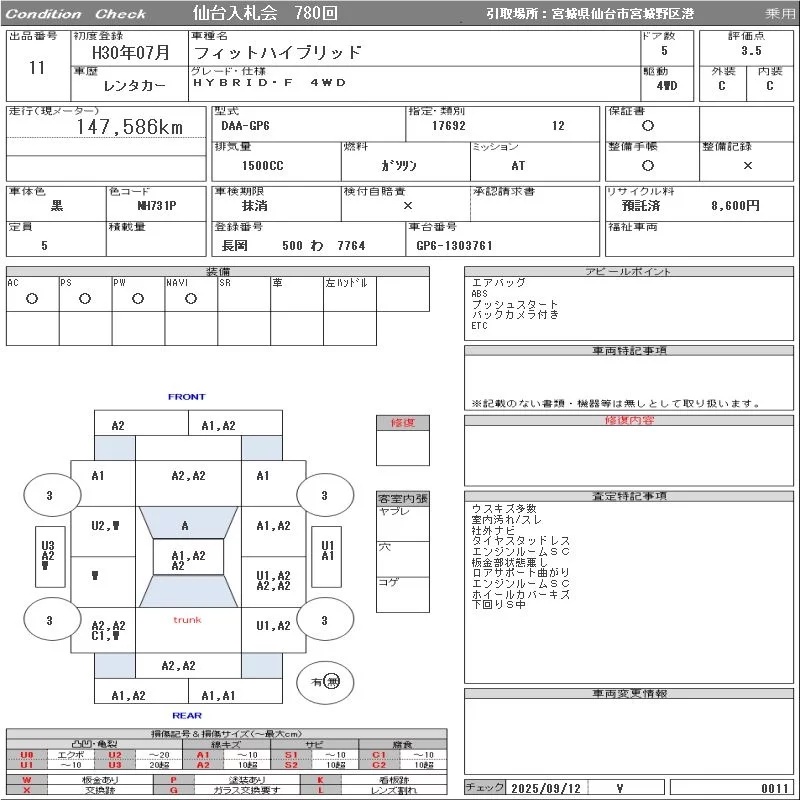 13G S HONDA SENSING | DBA-GK4 | L13B | Full-time 4WD | CVT | 1317cc | 100ps(73kW)/6000rpm | AИ-92 | 1 985 040 | |