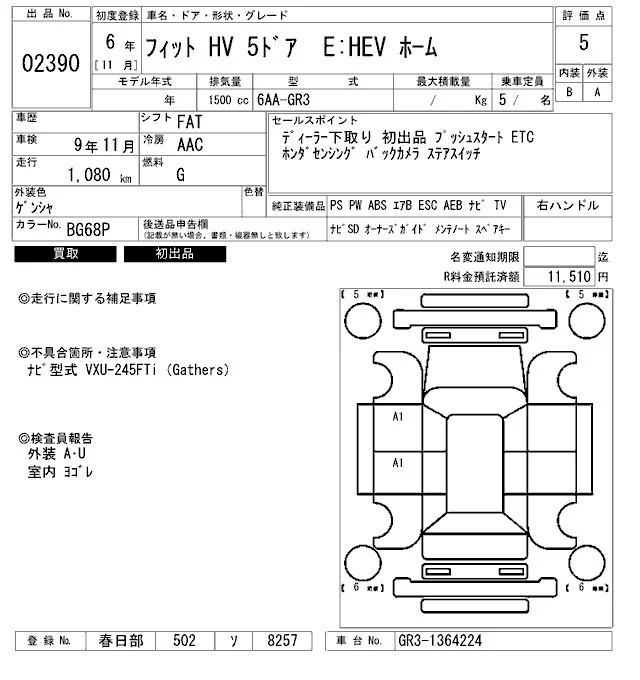 • Комплектация: e:HEV ホ-ム