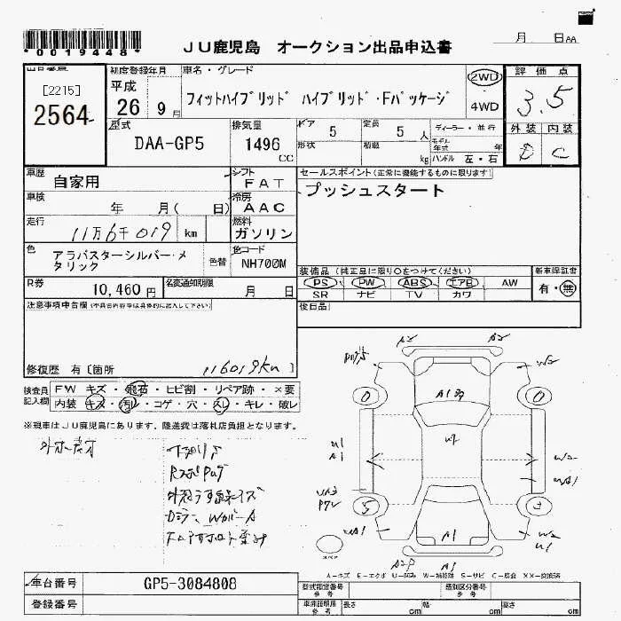 13G S PACKAGE | DBA-GK3 | L13B | FF | CVT | 1317cc | 100ps(73kW)/6000rpm | AИ-92 | 1 604 572 | |