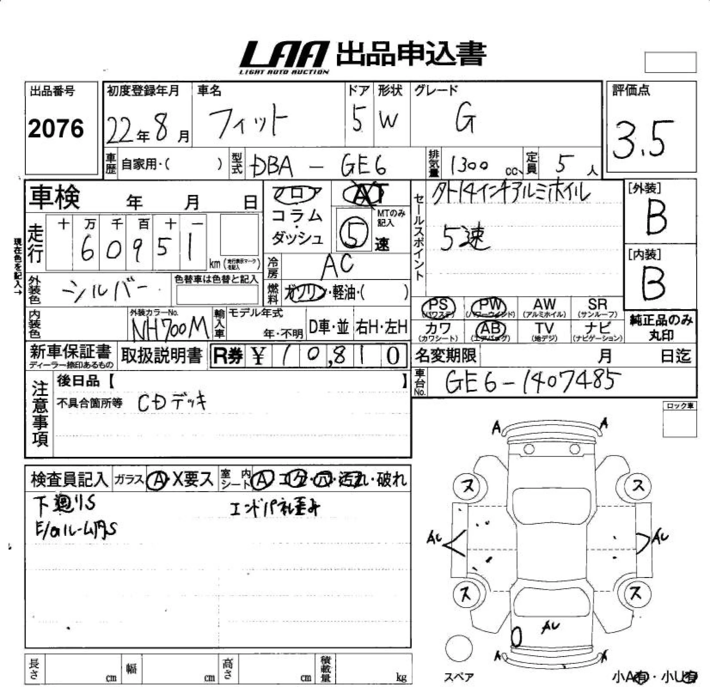 G | DBA-GE6 | L13A | FF | 5MT | 1339cc | 100ps(73kW)/6000rpm | AИ-92 | 1 230 000 | |
