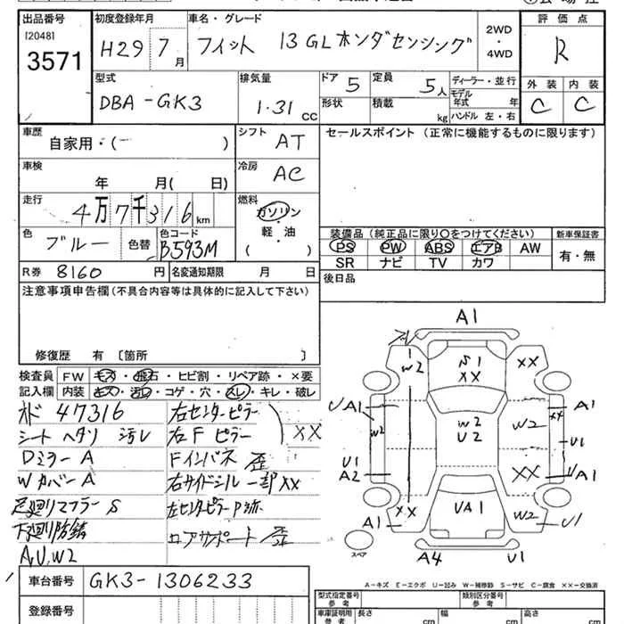 13G S HONDA SENSING | DBA-GK3 | L13B | FF | CVT | 1317cc | 100ps(73kW)/6000rpm | AИ-92 | 1 790 640 | |