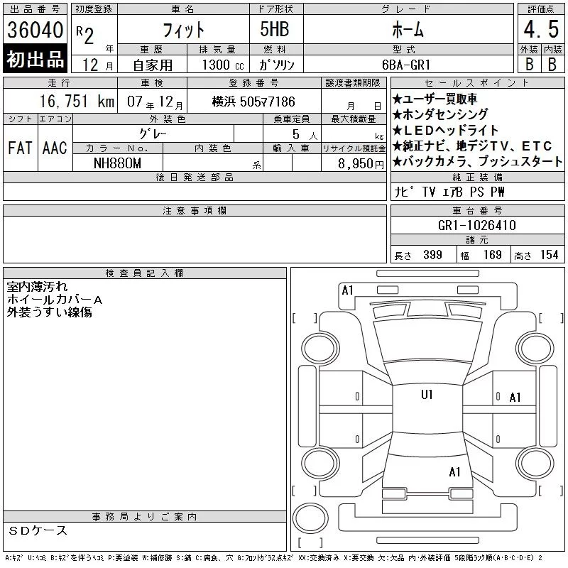 HOME | 6BA-GR1 | L13B | FF | CVT | 1317cc | 98ps(72kW)/6000rpm | AИ-92 | 1 718 200 | |