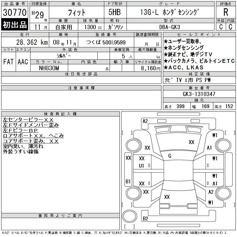 13G S HONDA SENSING | DBA-GK3 | L13B | FF | CVT | 1317cc | 100ps(73kW)/6000rpm | AИ-92 | 1 790 640 | |