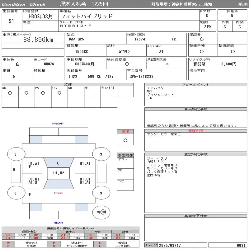 15XL HONDA SENSING | DBA-GK5 | L15B | FF | CVT | 1496cc | 132ps(97kW)/6600rpm | AИ-92 | 1 853 280 | |