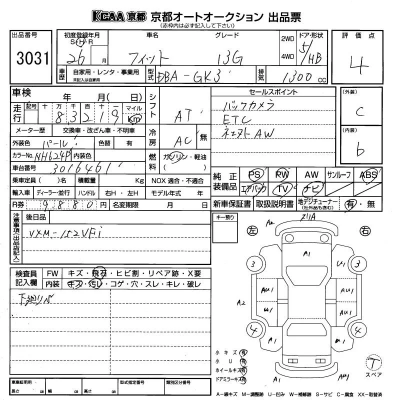 13G S PACKAGE | DBA-GK3 | L13B | FF | CVT | 1317cc | 100ps(73kW)/6000rpm | AИ-92 | 1 604 572 | |