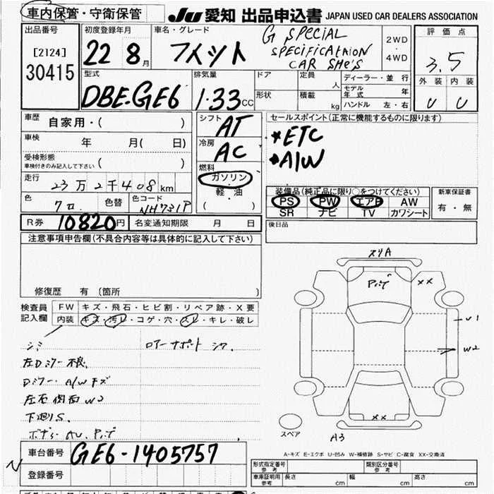 G | DBA-GE6 | L13A | FF | 5MT | 1339cc | 100ps(73kW)/6000rpm | AИ-92 | 1 230 000 | |