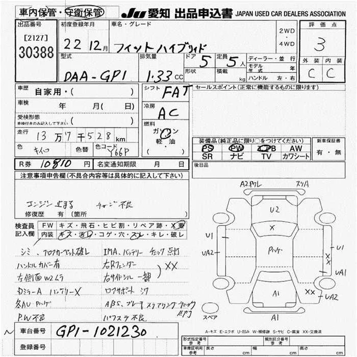 SPORTY EDITION | DBA-GE6 | L13A | FF | CVT | 1339cc | 100ps(73kW)/6000rpm | AИ-92 | 1 390 000 | |
