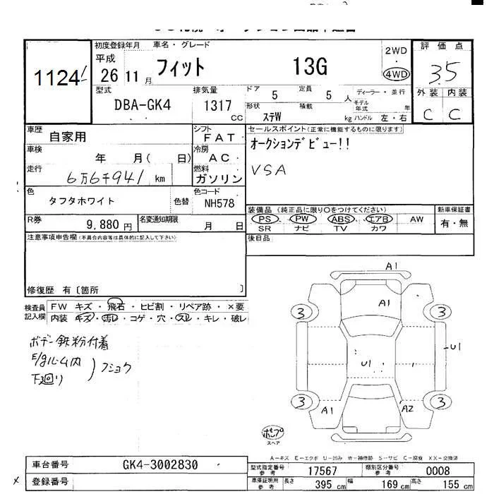13G S PACKAGE | DBA-GK3 | L13B | FF | CVT | 1317cc | 100ps(73kW)/6000rpm | AИ-92 | 1 604 572 | |