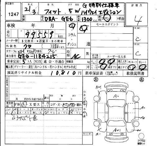 G | DBA-GE6 | L13A | FF | 5MT | 1339cc | 100ps(73kW)/6000rpm | AИ-92 | 1 197 000 |