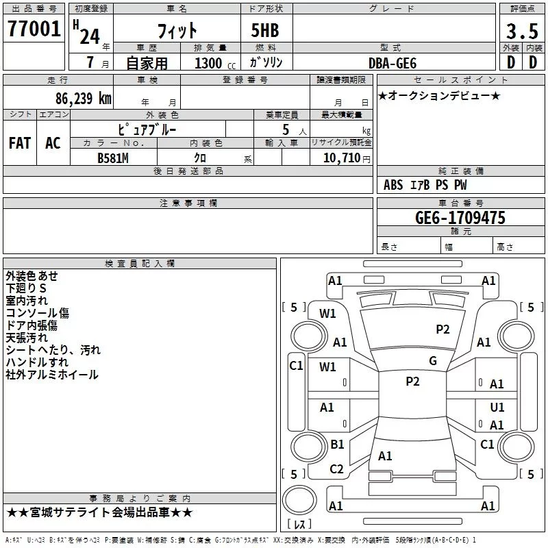 13G | DBA-GE6 | L13A | FF | 5MT | 1339cc | 100ps(73kW)/6000rpm | AИ-92 | 1 230 000 |