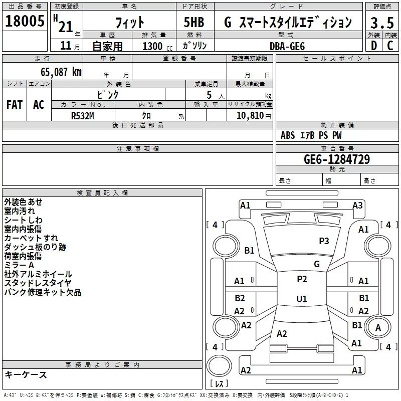 G | DBA-GE6 | L13A | FF | 5MT | 1339cc | 100ps(73kW)/6000rpm | AИ-92 | 1 197 000 |