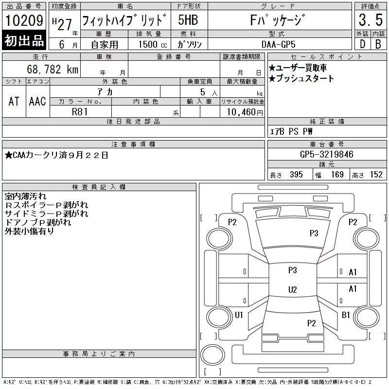 13G F PACKAGE | DBA-GK3 | L13B | FF | 5MT | 1317cc | 100ps(73kW)/6000rpm | AИ-92 | 1 425 000 | |