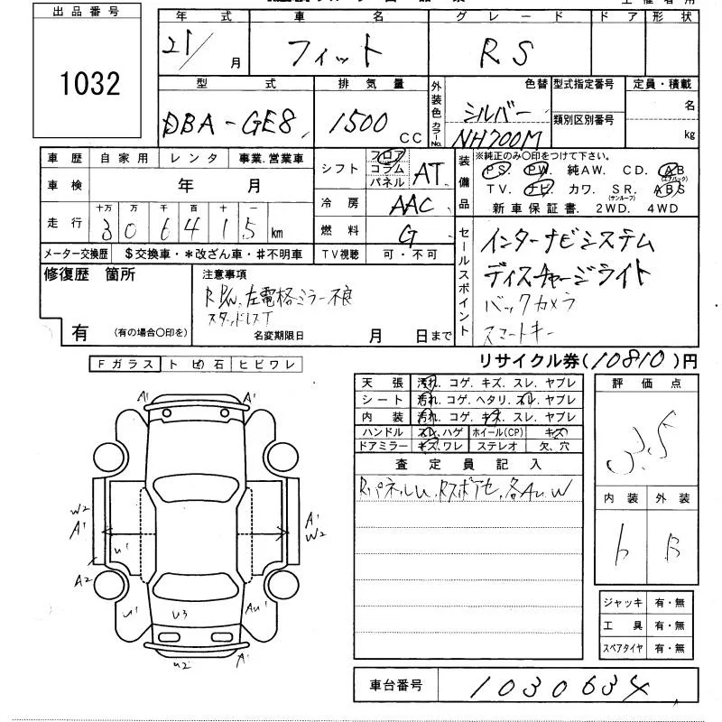 RS | DBA-GE8 | L15A | FF | CVT | 1496cc | 120ps(88kW)/6600rpm | AИ-92 | 1 690 000 | |