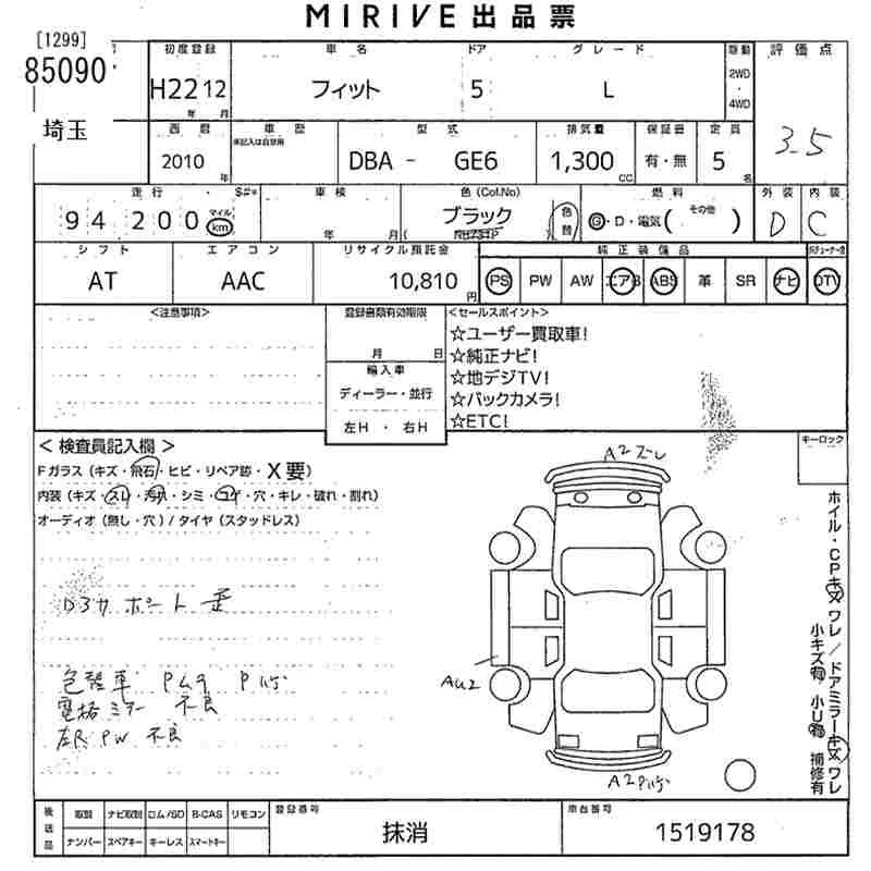 G | DBA-GE6 | L13A | FF | 5MT | 1339cc | 100ps(73kW)/6000rpm | AИ-92 | 1 230 000 | |