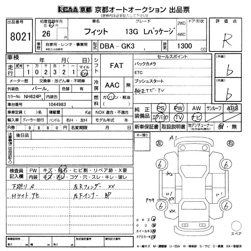 13G S PACKAGE | DBA-GK3 | L13B | FF | CVT | 1317cc | 100ps(73kW)/6000rpm | AИ-92 | 1 604 572 | |