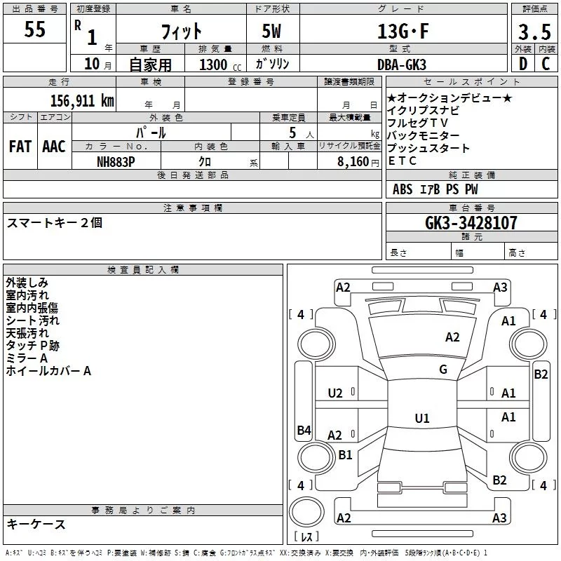 13G F | DBA-GK3 | L13B | FF | 5MT | 1317cc | 100ps(73kW)/6000rpm | AИ-92 | 1 455 300 | |