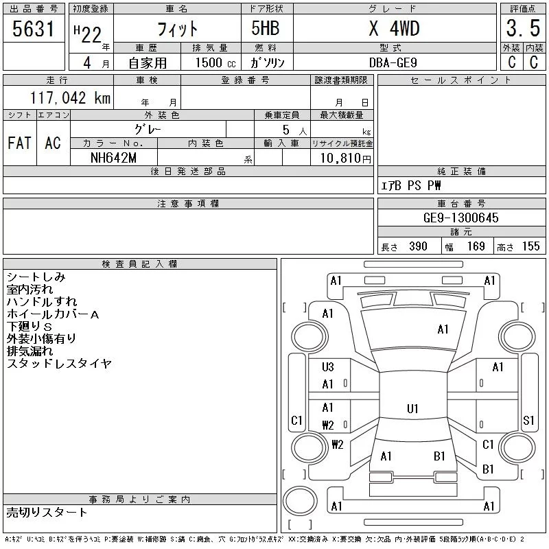 G | DBA-GE6 | L13A | FF | 5MT | 1339cc | 100ps(73kW)/6000rpm | AИ-92 | 1 230 000 | |