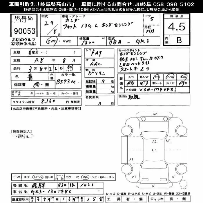13G S HONDA SENSING | DBA-GK3 | L13B | FF | CVT | 1317cc | 100ps(73kW)/6000rpm | AИ-92 | 1 790 640 | |