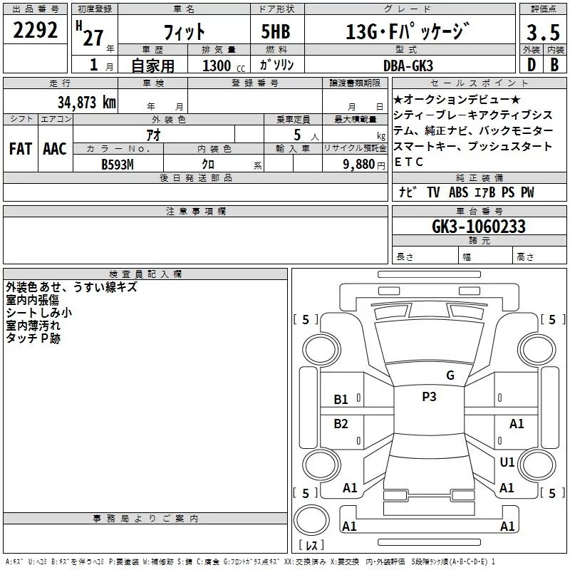 13G F PACKAGE | DBA-GK3 | L13B | FF | 5MT | 1317cc | 100ps(73kW)/6000rpm | AИ-92 | 1 425 000 | |