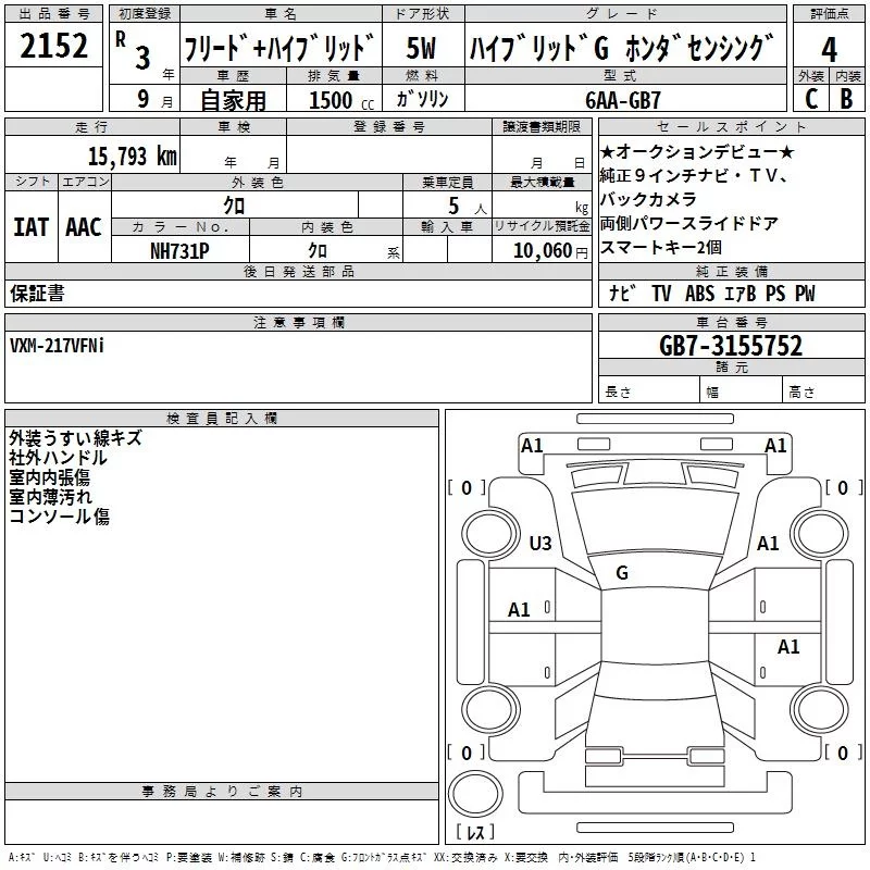 • Комплектация: Hybrid G Honda Sensing