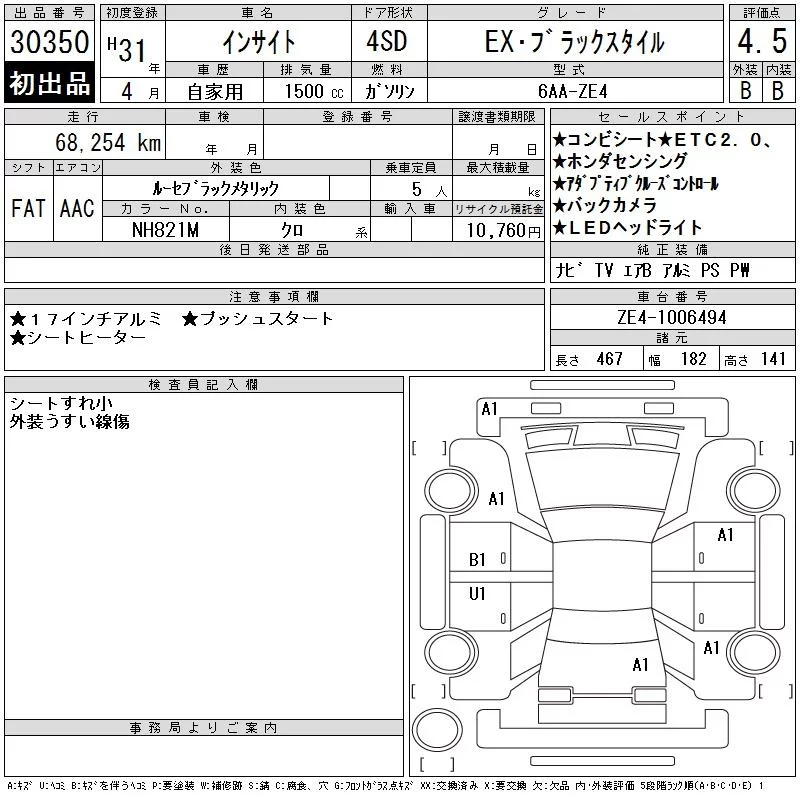 Honda INSIGHT 2019 • 3337629 ₽ под ключ из Японии
