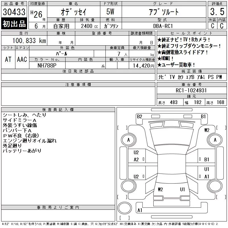 Honda ODYSSEY 2014 • 5319701 ₽ под ключ из Японии