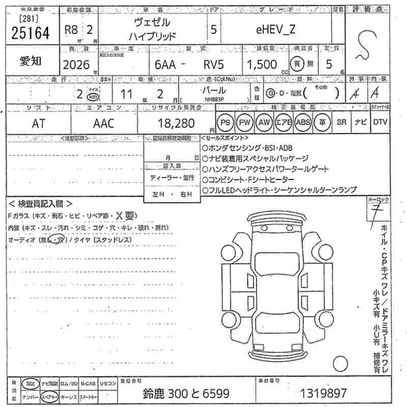 Honda VEZEL 2026 • 2825061 ₽ под ключ из Японии
