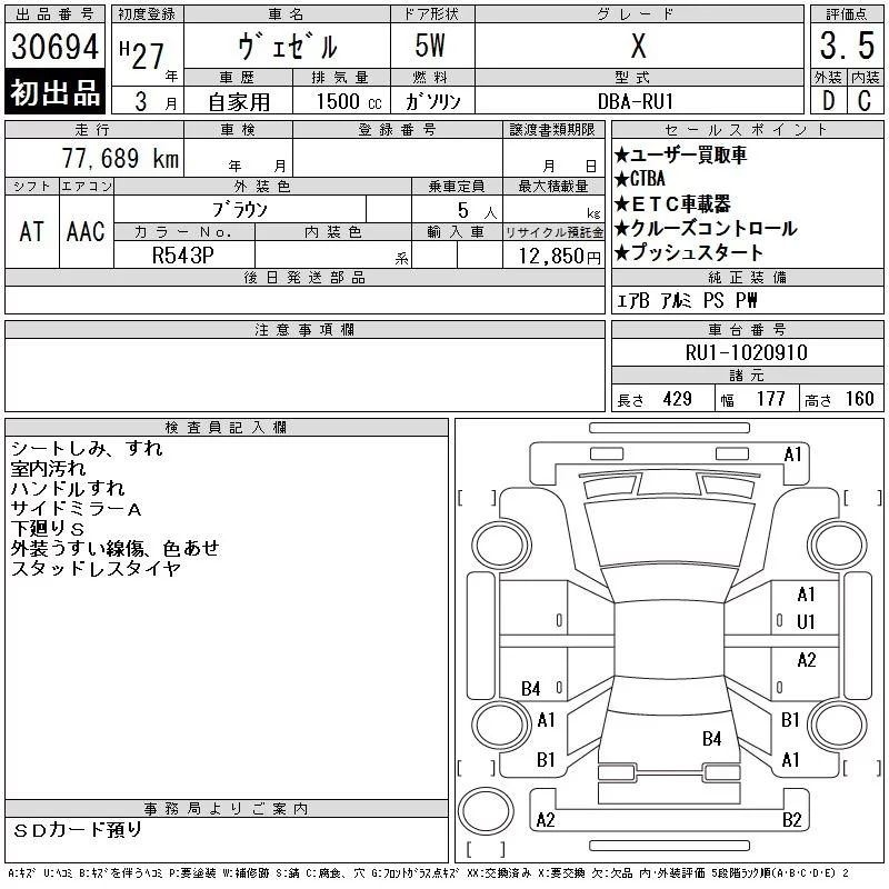 Honda VEZEL 2015 • 1187502 ₽ под ключ из Японии