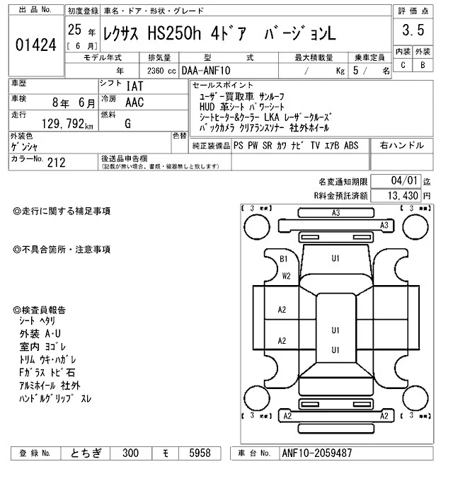 Lexus HS 2013 • 5490693 ₽ под ключ из Японии
