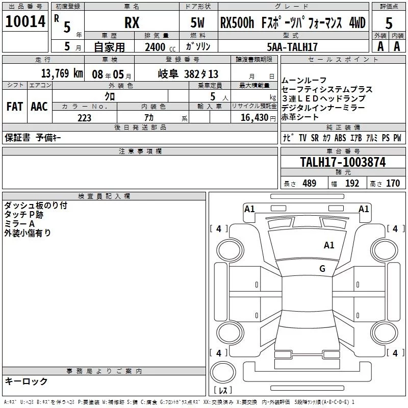 • Комплектация: RX500hF Sports パフォ 4WD