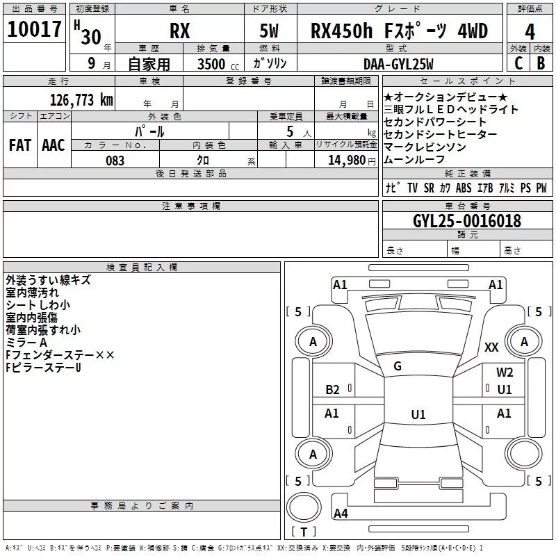 • Комплектация: RX450h F Sports 4WD