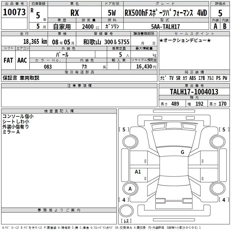 • Комплектация: RX500hF Sports パフォ 4WD
