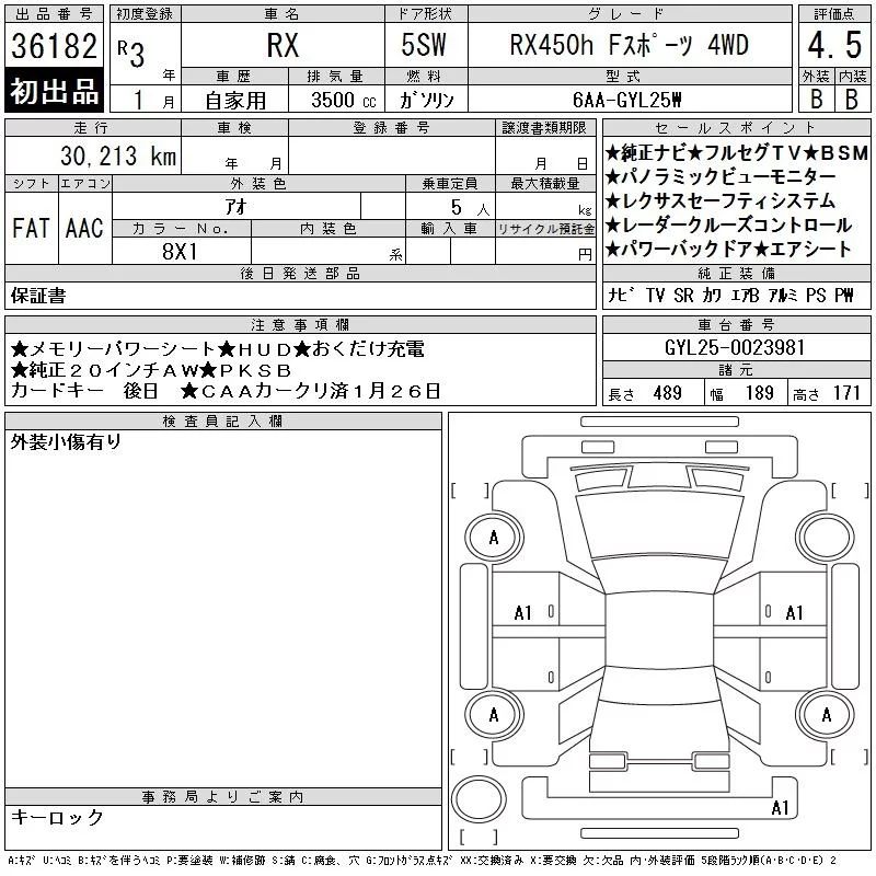 • Комплектация: RX450h F Sports 4WD