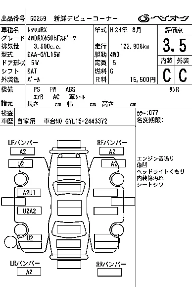 • Комплектация: 4WD RX450h F Sports