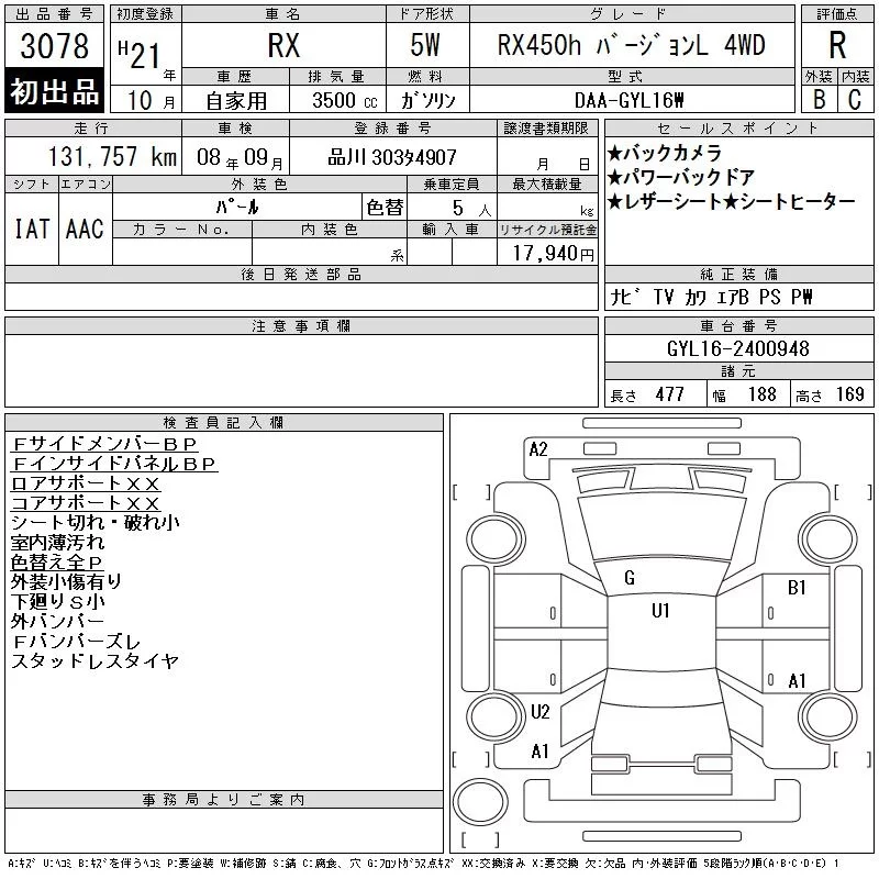 • Комплектация: RX450h Version L 4WD