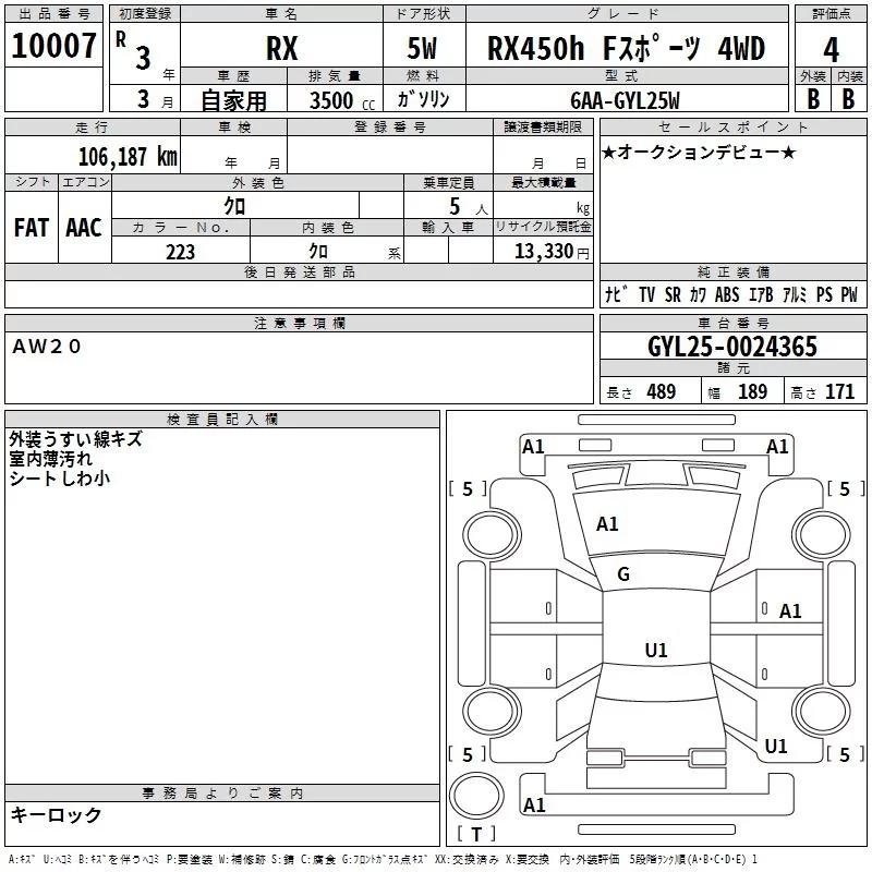 • Комплектация: RX450h F Sports 4WD