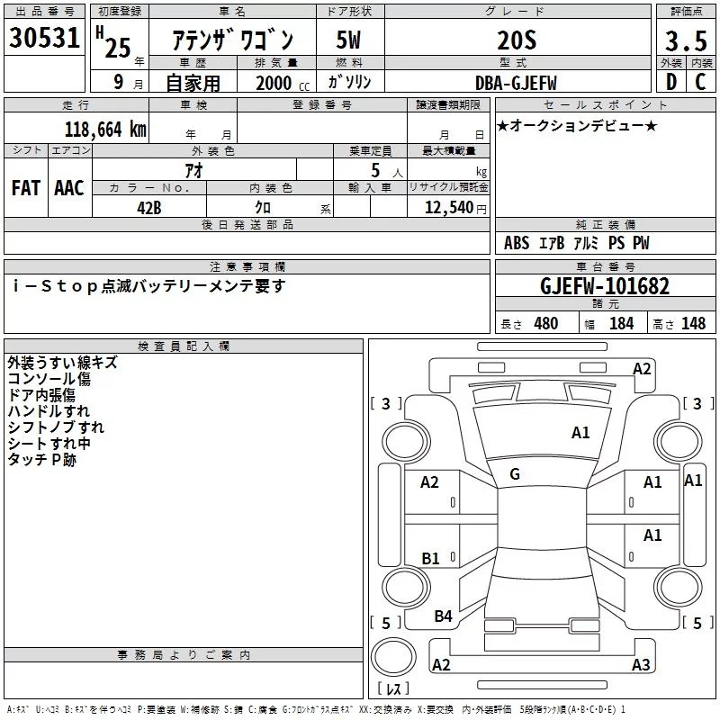 Mazda ATENZA WAGON 2013 • 1661547 ₽ под ключ из Японии